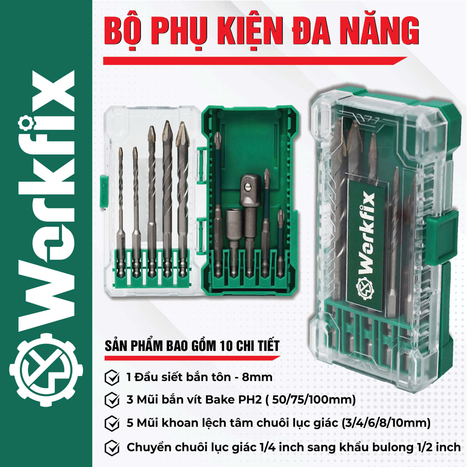 - Tên sản phẩm: Bộ 10 món phụ kiện đa năng WORKFIX WF-SDB10