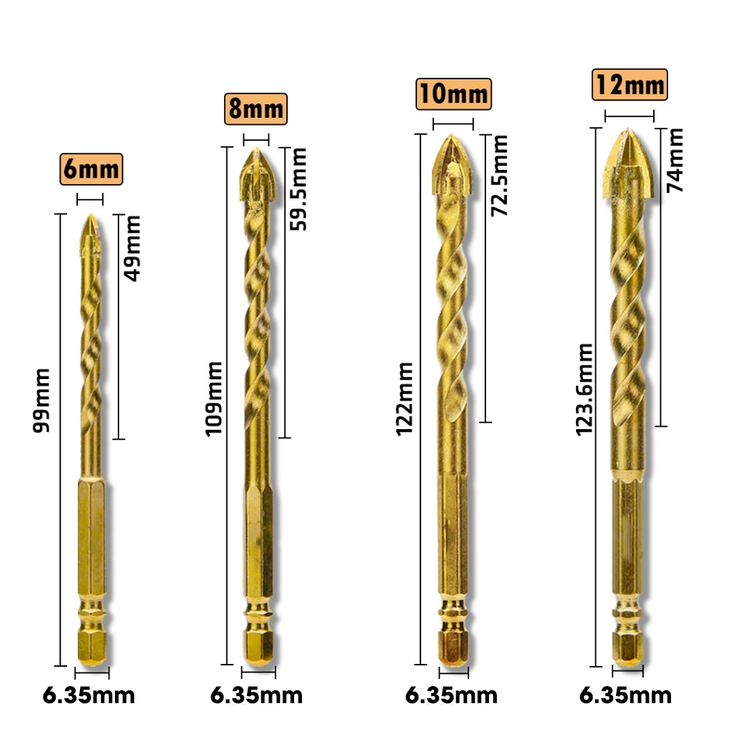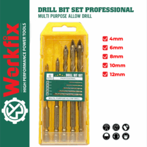 Bộ 5 Mũi Khoan Đa Năng 4 Cạnh WORKFIX – 4mm, 6mm, 8mm,10mm, 12mm – Chuôi Lục Giác 6.35 – Mũi Khoan Gạch Men