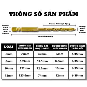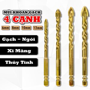– Đầu mũi khoan đa năng 4 cạnh, rãnh xoắn.