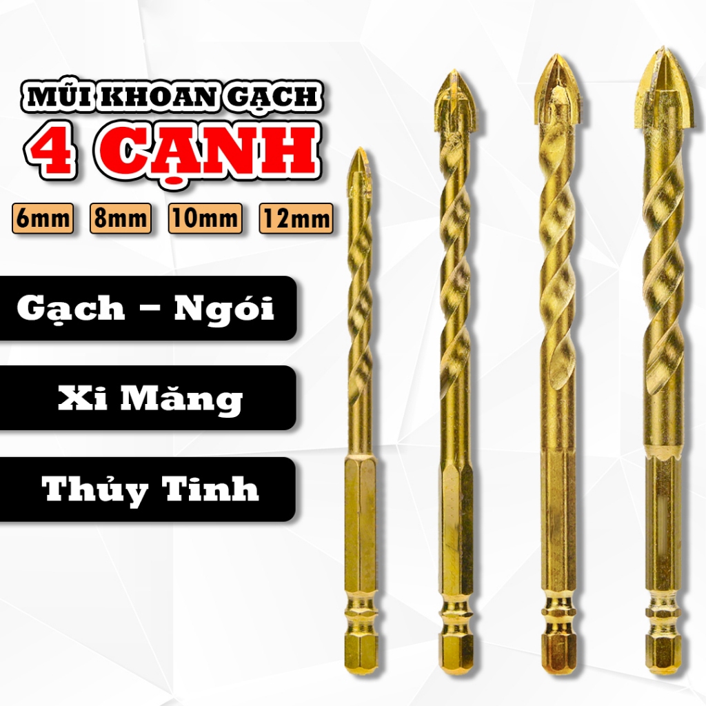 • Đầu mũi 4 cạnh sắc bến, độ cứng cao khoan rất ngọt.