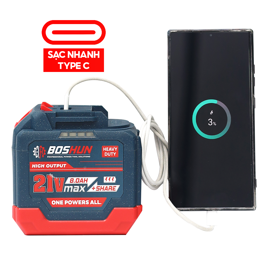 Khối pin được trang bị sạc type C dùng để sạc các thiết bị như điện thoại hay các thiết bị khác nhanh chóng.