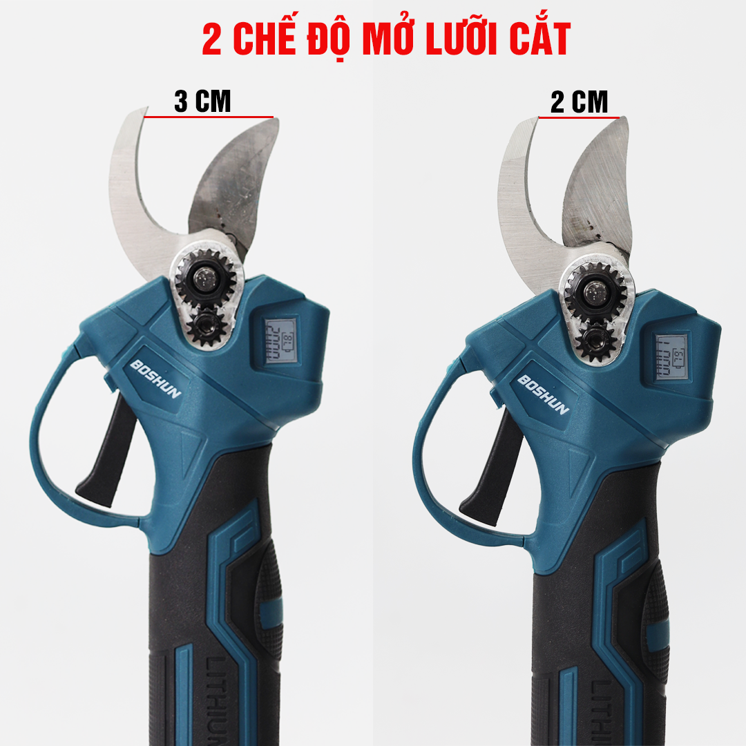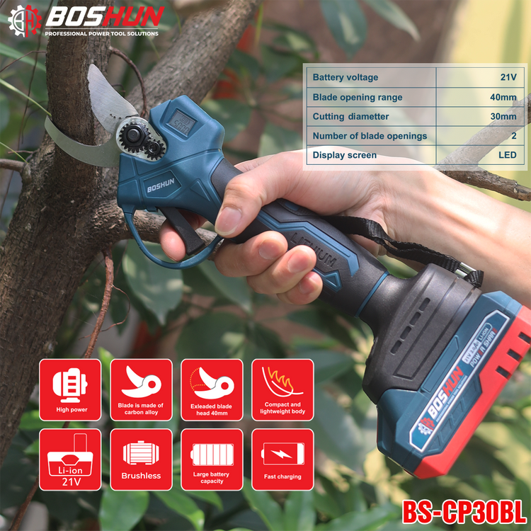 Kéo Cắt Cành BOSHUN BS-CP30BL – Máy Cắt Cành Không Chổi Than, Hợp Kim, Pin Khủng 21V