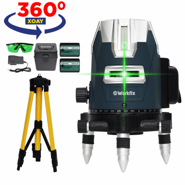 Máy Bắn Cốt, Cân Bằng Laze WORKFIX WF-LS686, 5 Tia Xanh, Xoay 360°, Kèm Chân 1m3