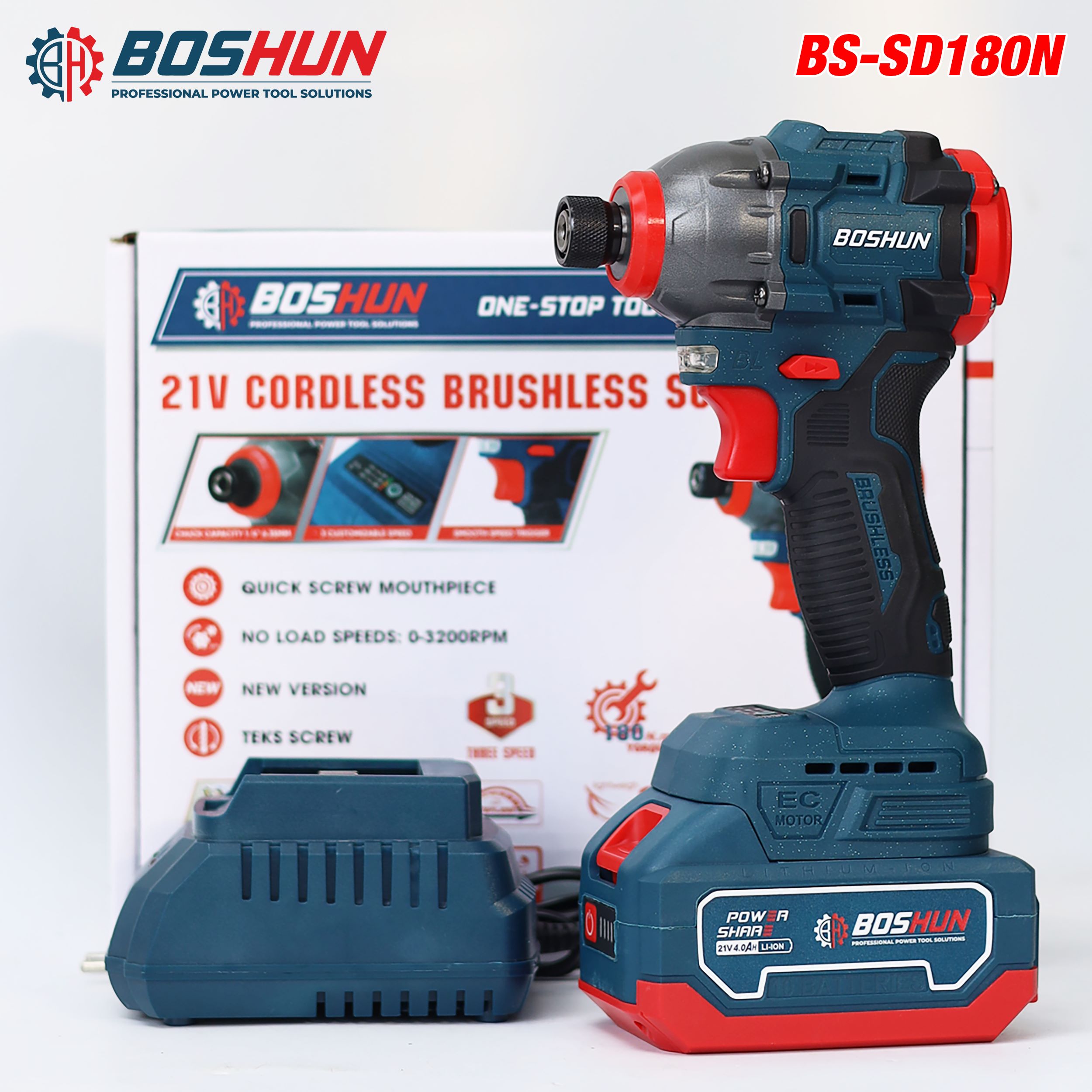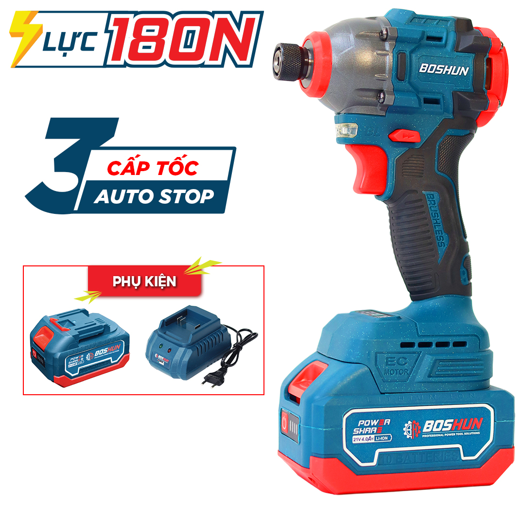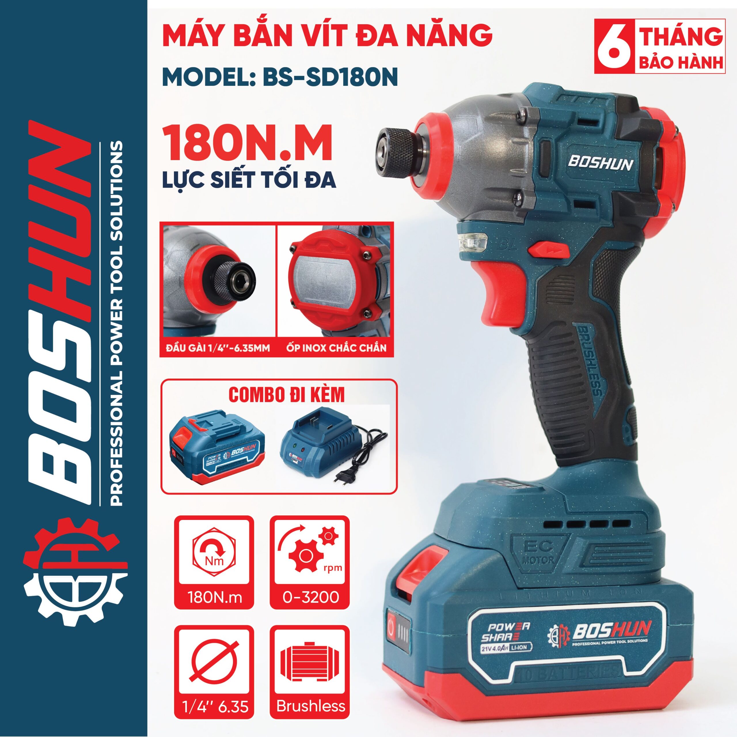 Máy Bắn Vít Boshun BS-SD180N, Lực Siết 180Nm, Có 3 chế độ lực siết, Autostop Bắt Vít Gỗ, Vít Sắt