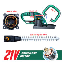 Mát cắt hàng rào sử dụng động cơ 100% lõi đồng không chổi than cao cấp, nhông kim loại giúp cho máy có thể hoạt động bền bỉ, tiêu hao ít năng lượng hơn.