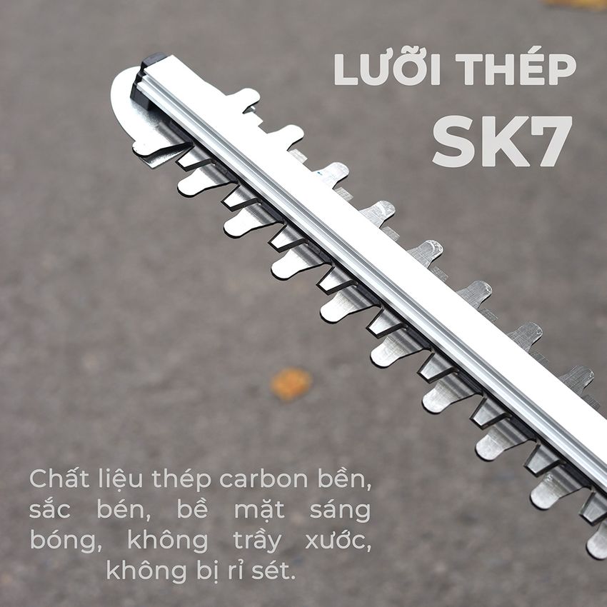 - Tốc độ không tải cao cho khả năng cắt mượt. Chiều rộng cắt lớn cắt được những cành cây lên đến 2cm