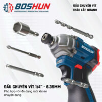 Máy bắn vít Boshun BS-SD150BL được trang bị đầu gài nhanh 1/4” (6.35mm) – kích thước mũi khoan, mũi vít chuyên dụng