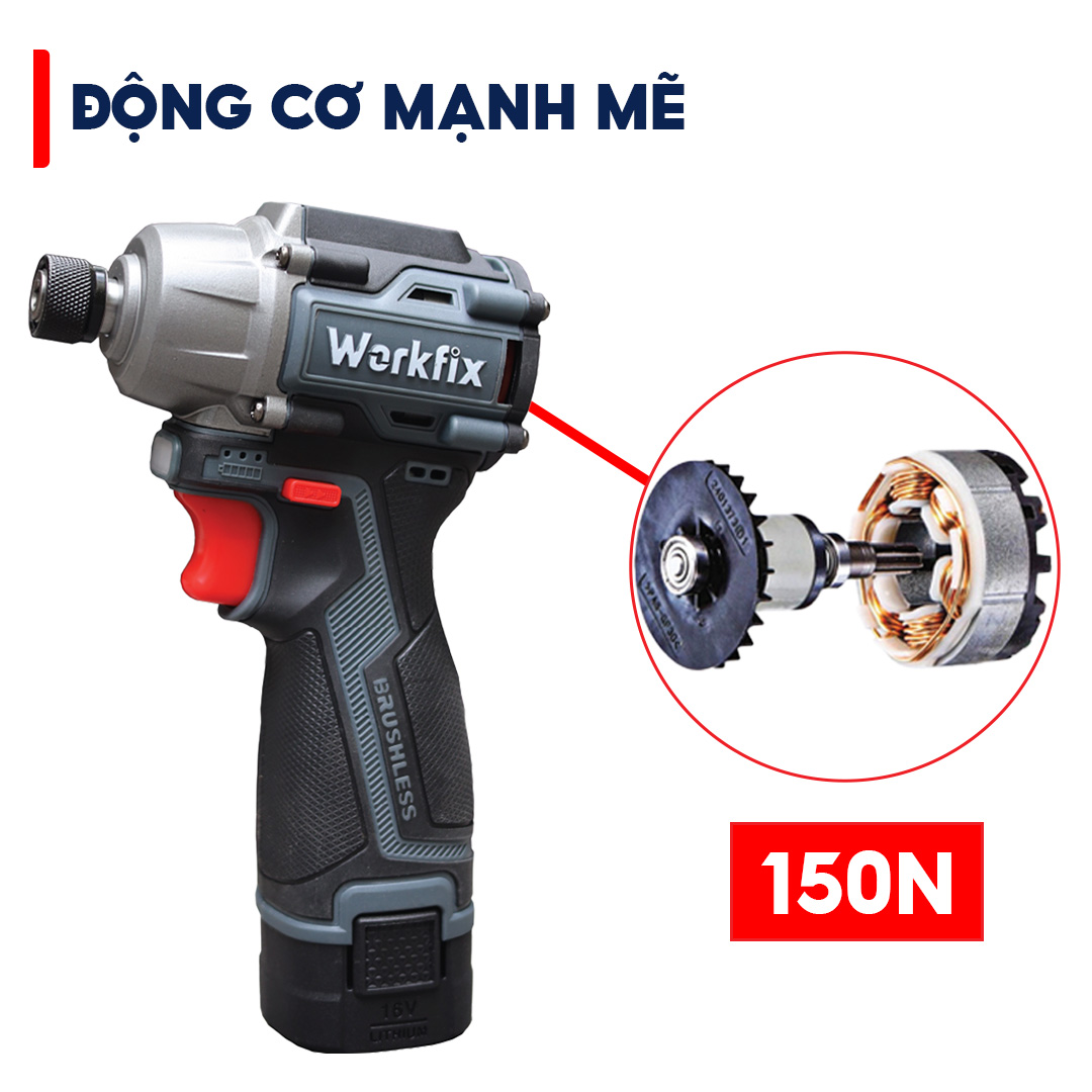 Máy được trang bị động cơ không chổi than, 100% lõi đồng giúp mở bulong nhanh hơn 35%, khoan tường nhanh hơn 25%, vặn vít nhanh hơn 15%, khoan gỗ nhanh hơn 15%.