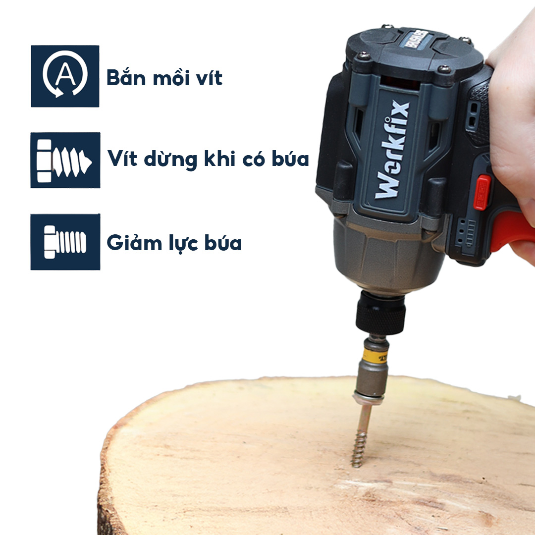 Trang bị 3 tính năng thông minh: bắn vít mồi, vít dừng khi có búa, giảm lực búa