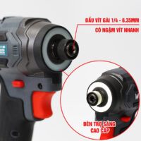 - ĐẦU CHUYÊN VÍT: Đầu chuyên vít 1/4 (6,35 mm) giúp thao tác dễ dàng chuyển đổi trong quá trình làm việc