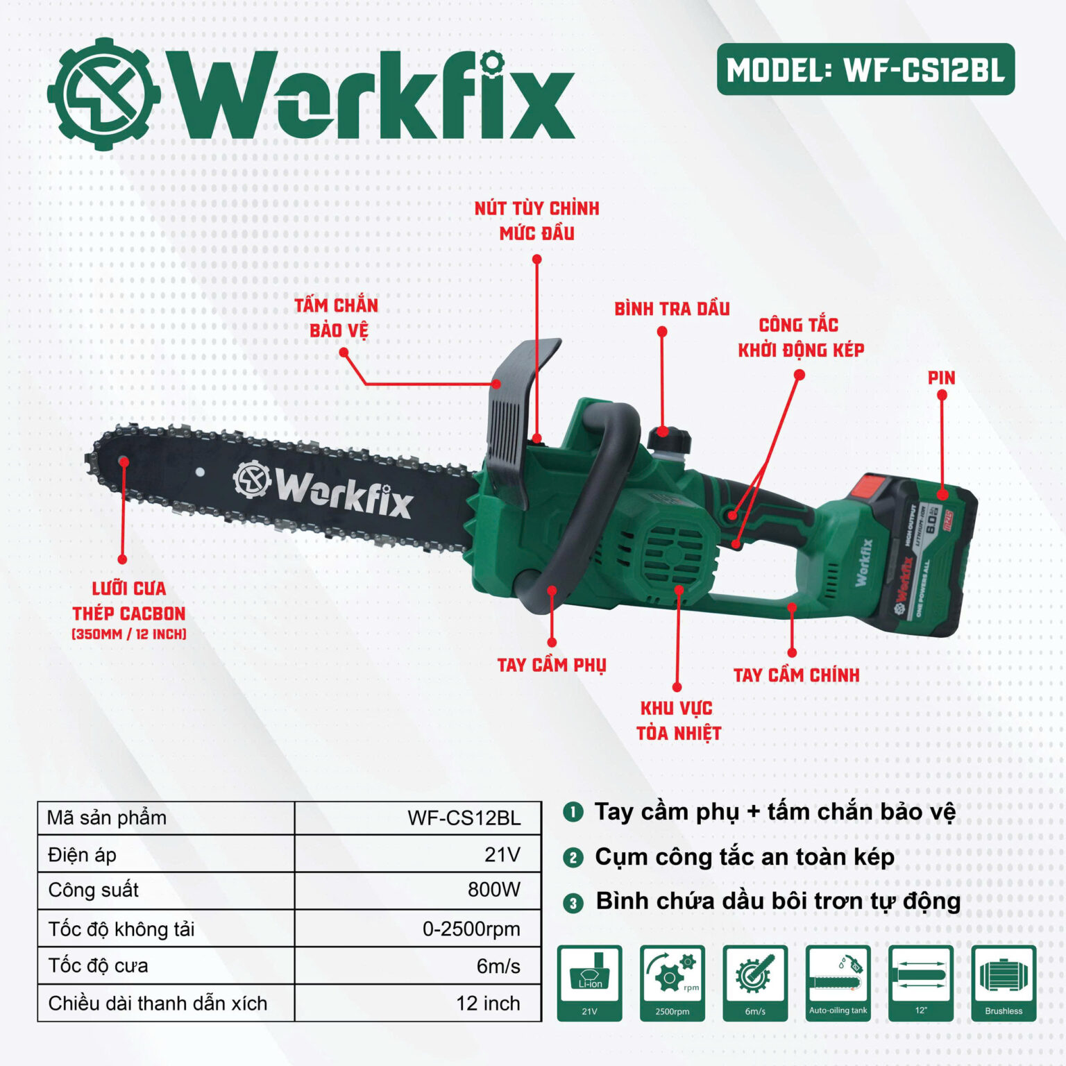 MallMáy Cưa Bằng Xích Workfix WF-CS12BL – 12 inch – Tra nhớt tự động
