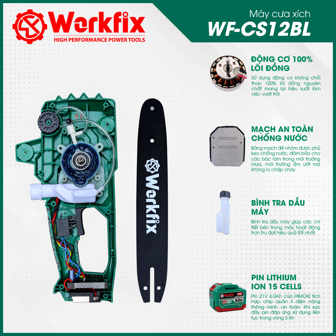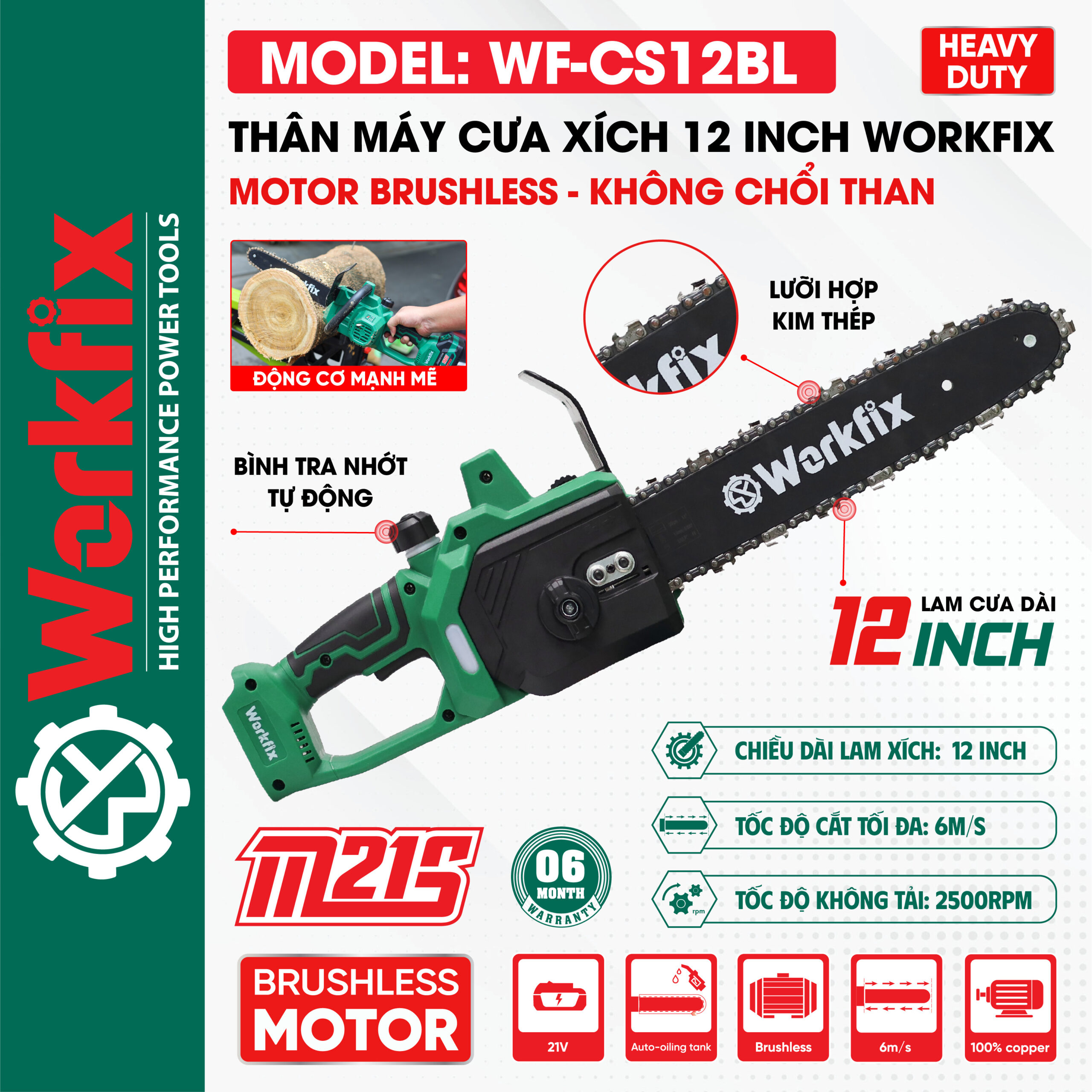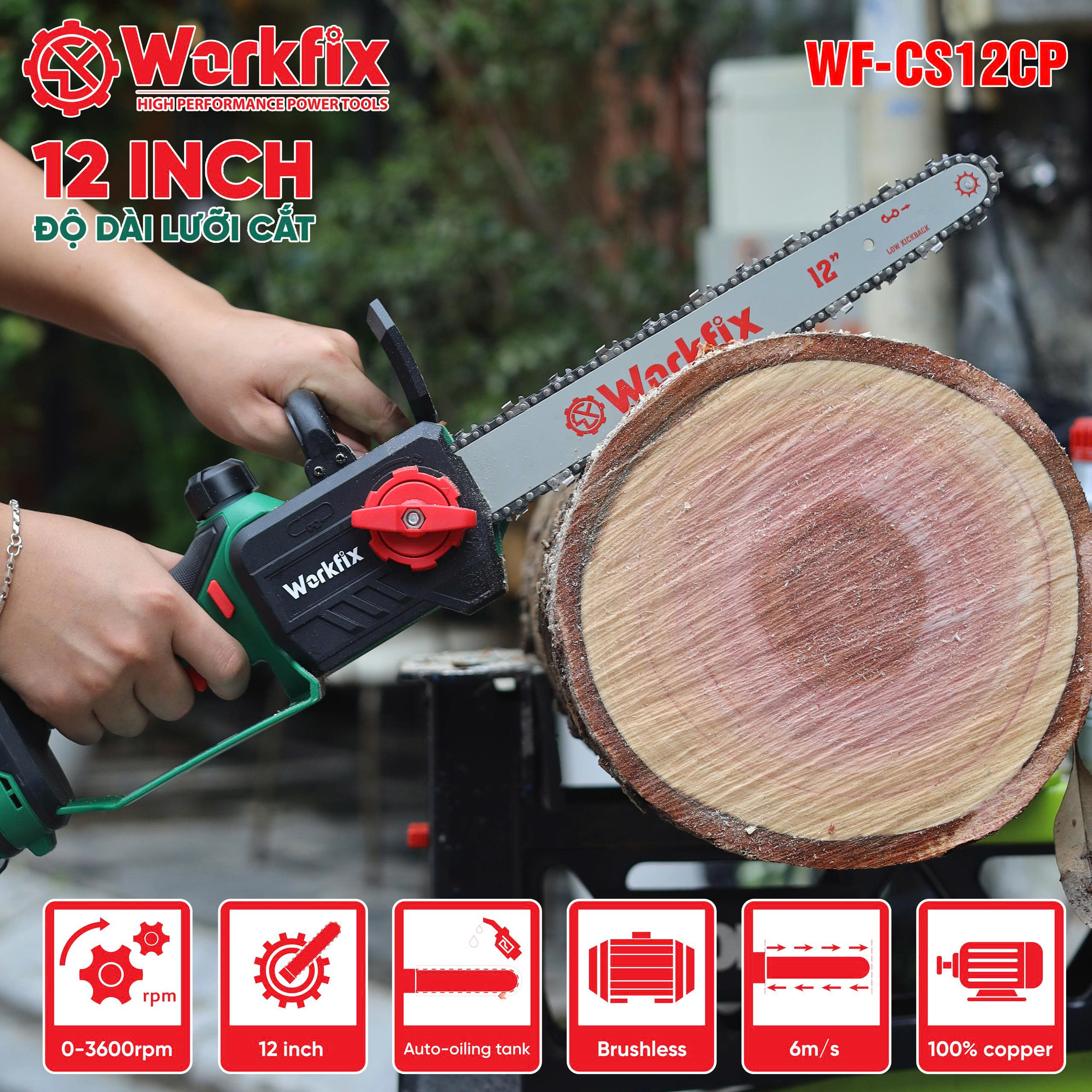 Review Máy Cưa Bằng Xích Workfix WF-CS12CP – 12 inch – Tra nhớt tự động