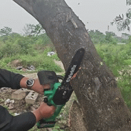 Máy được trang bị lam xích 12 inch đem lại chiều rộng khổ cắt lớn 30-40cm cùng xích cưa là sự kết hợp của thép carbon tinh luyện với đinh tán truyền nhiệt đảm bảo độ cứng cáp bền bỉ khi sử dụng