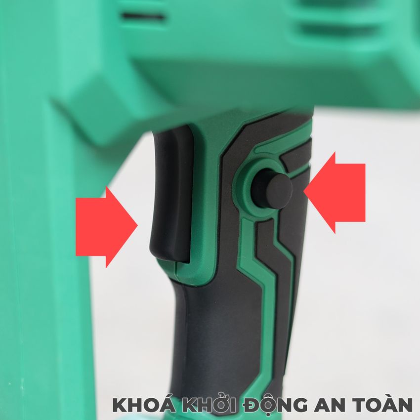 Công tắc cưa có khởi động mềm phanh từ chống an toàn kèm theo là nút khoá an toàn nên hoàn toàn yên tâm khi sử dụng