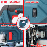 • Máy cưa lọng Boshun trang bị cò bóp và nút khóa đảm bảo an toàn khi sử dụng