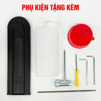 - PHỤ KIỆN: Ốp bảo vệ, Bình đựng xăng, Phễu đổ xăng, Cờ lê tháo, Tua vít tháo lắp, Dũa xích