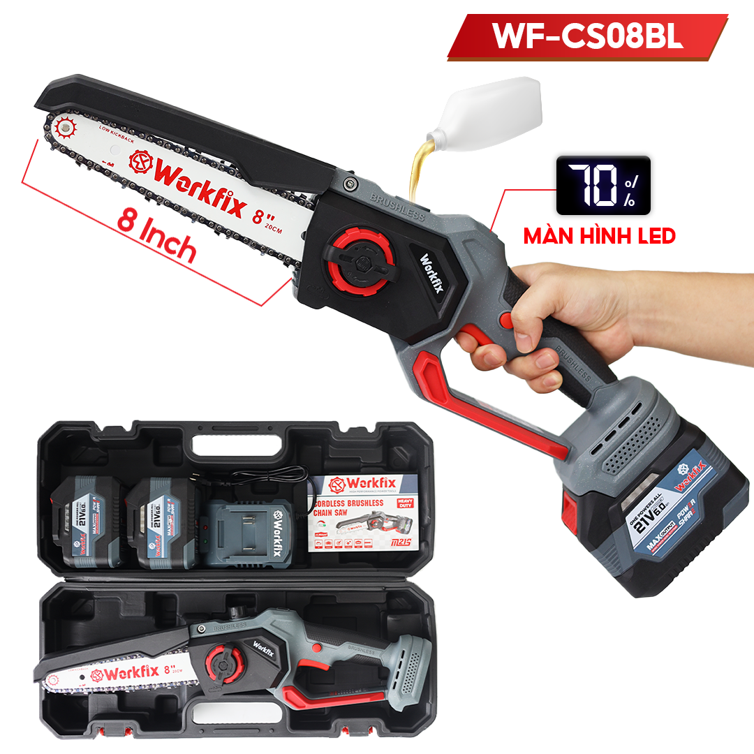 Máy Cưa Xích Pin 8inch WORKFIX WF-CS08BL – Tra Nhớt Tự Động