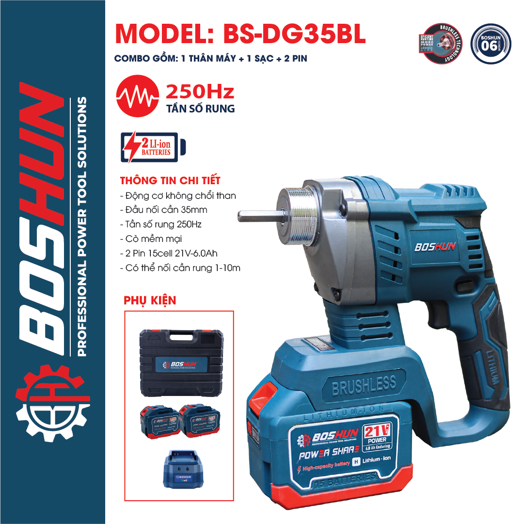 - Máy Đầm Dùi Bê Tông Pin Boshun BS-DG35BL
