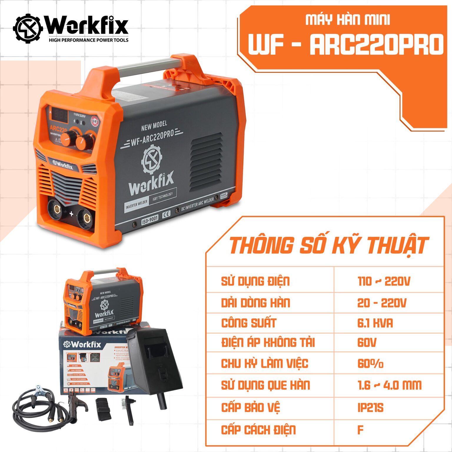 MallMáy hàn điện tử Workfix WF-ARC220PRO – Công nghệ INVERTER IGBT – Hàn que từ 1,6 – 4mm