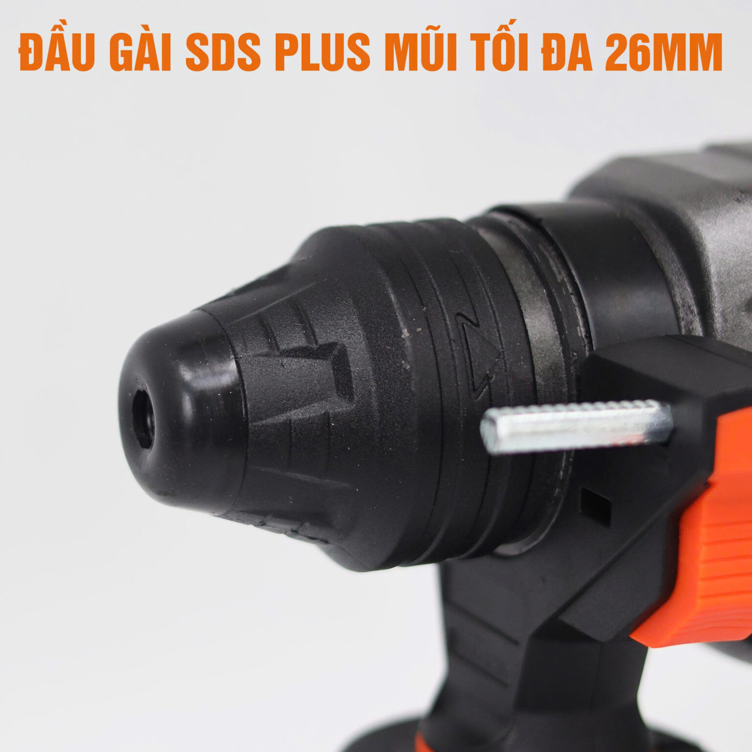 Đầu gài SDS PLUS (Special Direct System) thế hệ mới nhất, cho phép thay mũi khoan nhanh chóng mà không cần dụng cụ hỗ trợ, gài mũi máy khoan bê tông tới 26mm