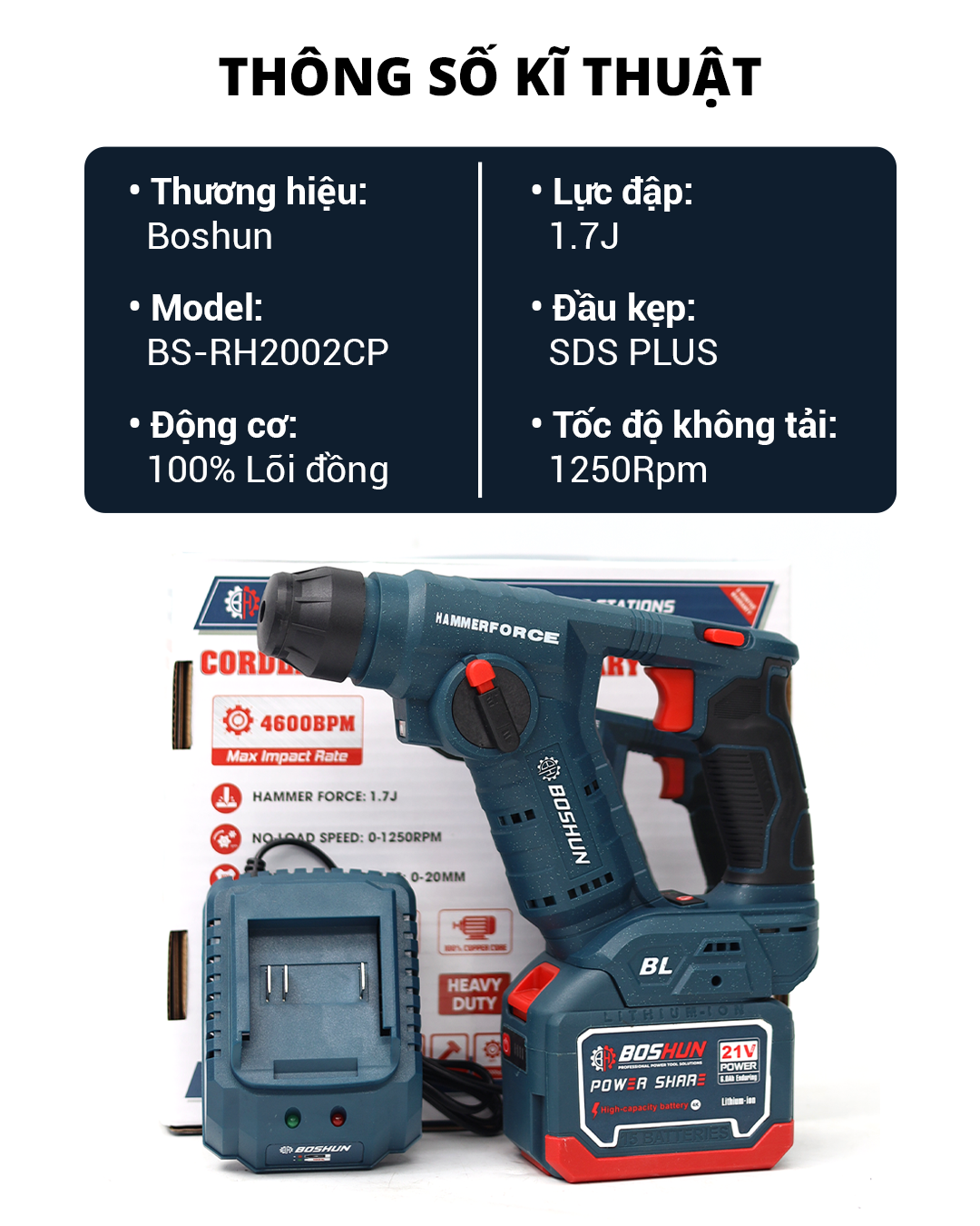 Máy Khoan Bê Tông Pin Mini Boshun BS-RH2002