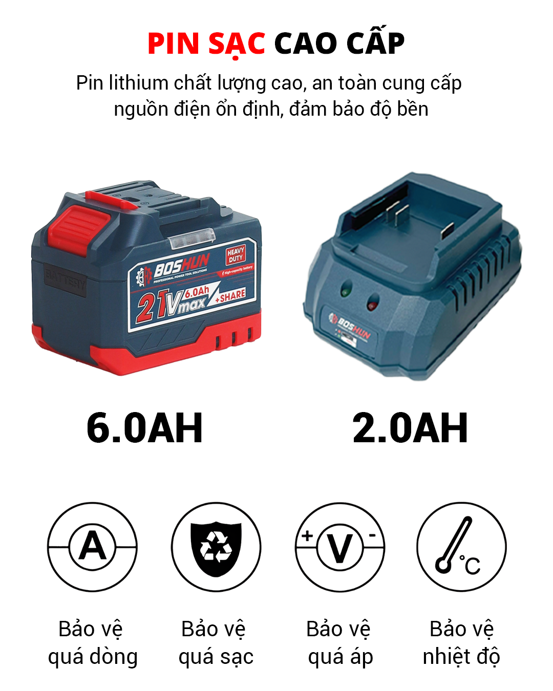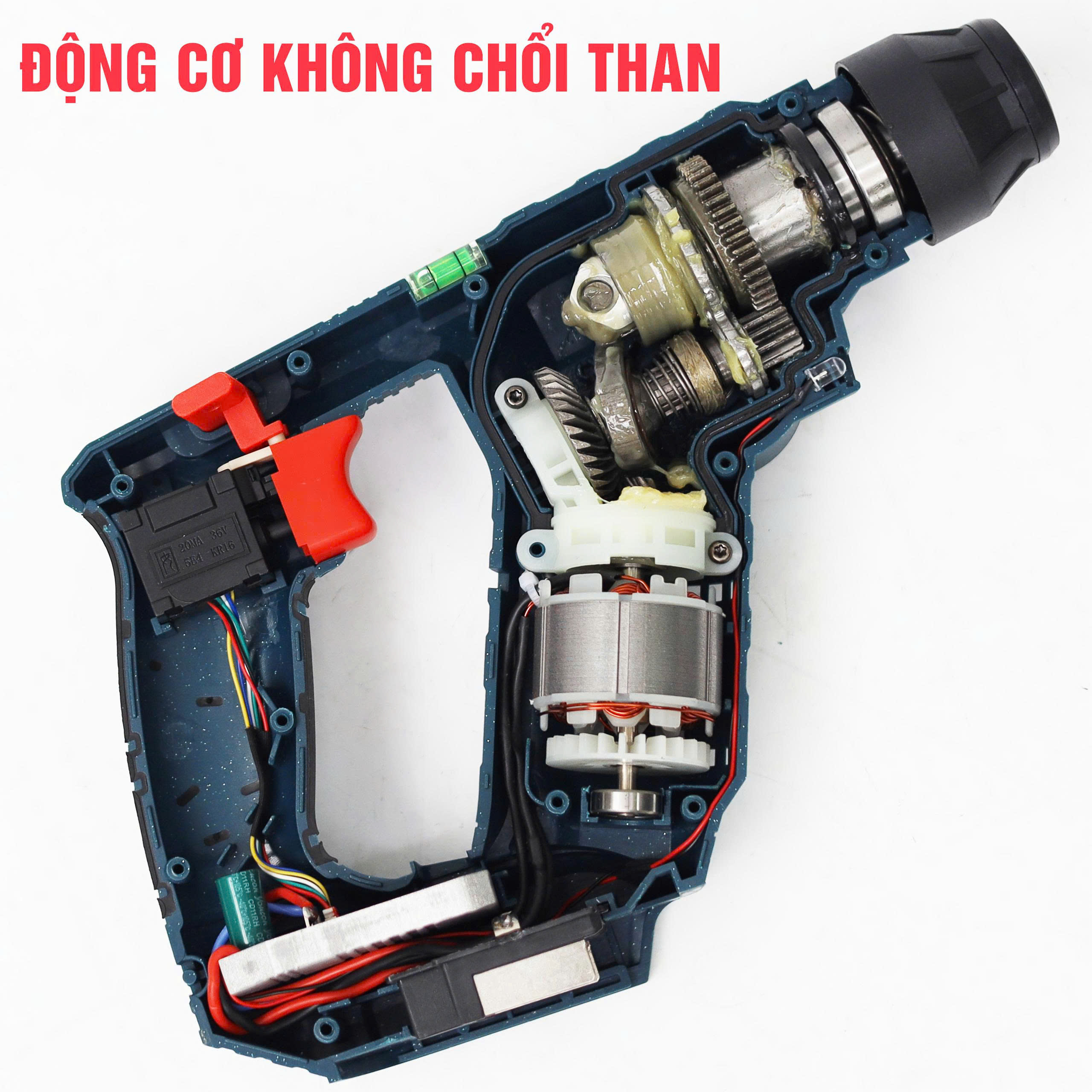 - Cụm pin 15 cell 6.0A siêu khỏe: Dung lượng lớn cho thời gian làm việc dài. Vỏ pin nhựa ABS chống va đập tốt trên công trường.