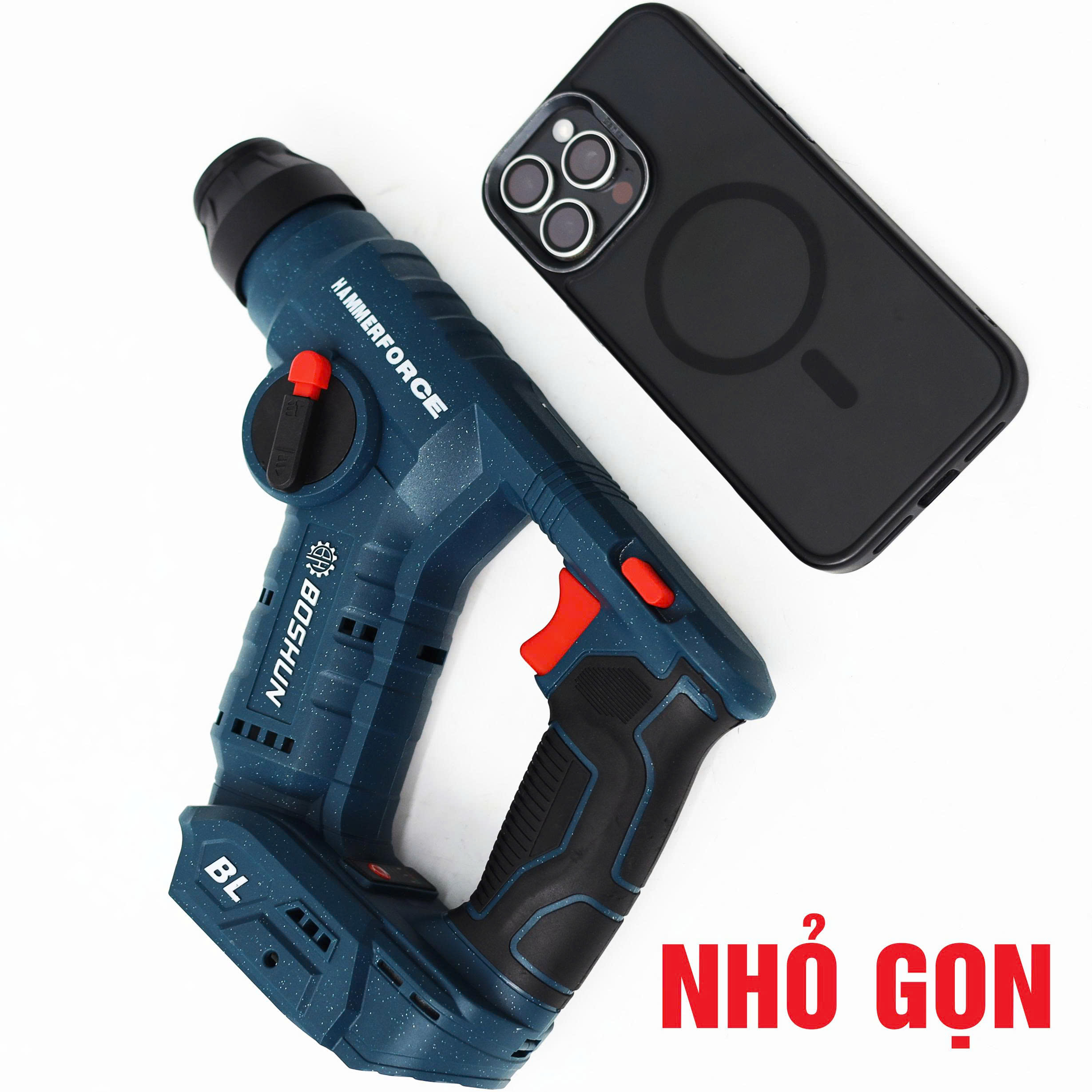 - Thiết kế siêu nhỏ gọn, linh hoạt: Trọng lượng thân máy chỉ hơn 1.1kg. Dễ dàng thao tác bằng một tay, làm việc liên tục trên cao hoặc góc hẹp mà không mỏi tay.