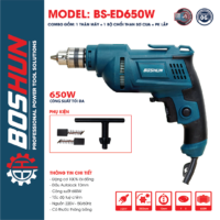 Máy khoan điện 10MM Boshun BS-ED650W, Máy khoan tường, sắt, gỗ, bắt vít, Bảo hành chính hãng