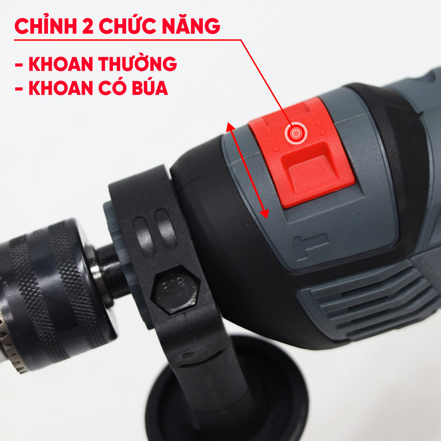 Máy có 3 chức năng khoan thường, khoan búa, vít, giúp thao tác dễ dàng trên các chất liệu  khác nhau như: thép , gỗ, sắt,…