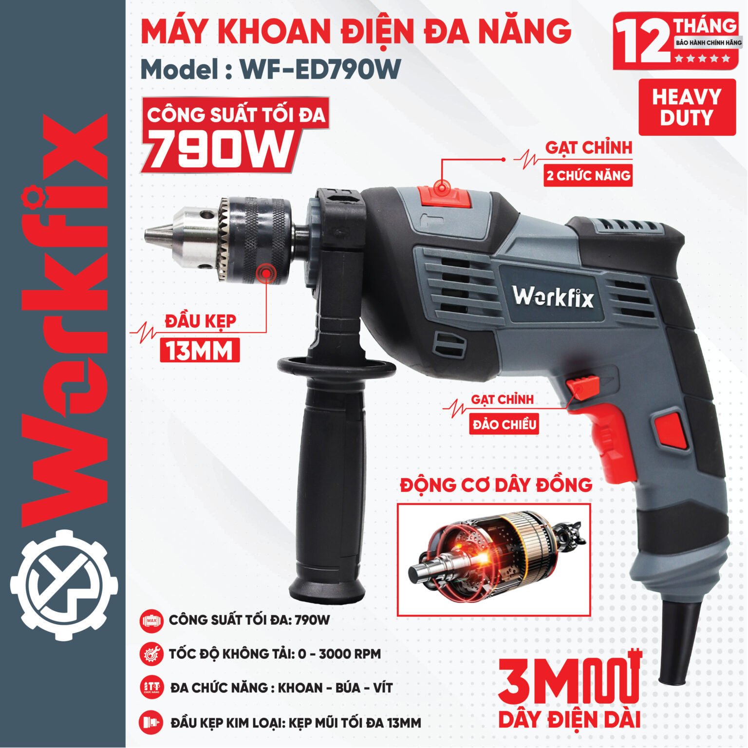 MallMáy khoan điện Workfix WF-ED790W – Đầu 13mm – 2 chức năng – Công suất 790W