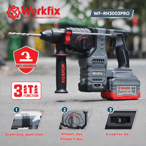 Review Máy Khoan Đục Bê Tông Workfix WF-RH3003PRO – Lực đập 3,0J – Anti-Kickback
