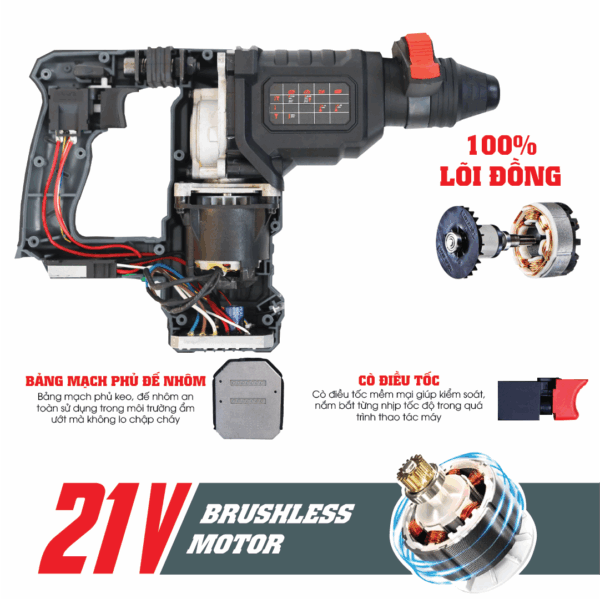 - Động cơ KHÔNG chổi than, motor ruột đồng 100%