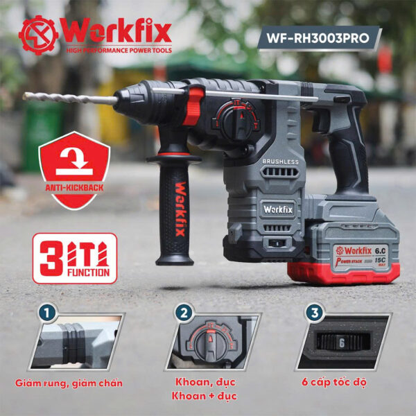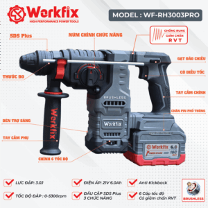 Máy Khoan Đục Bê Tông Workfix WF-RH3003PRO – Lực đập 3,0J – Anti-Kickback