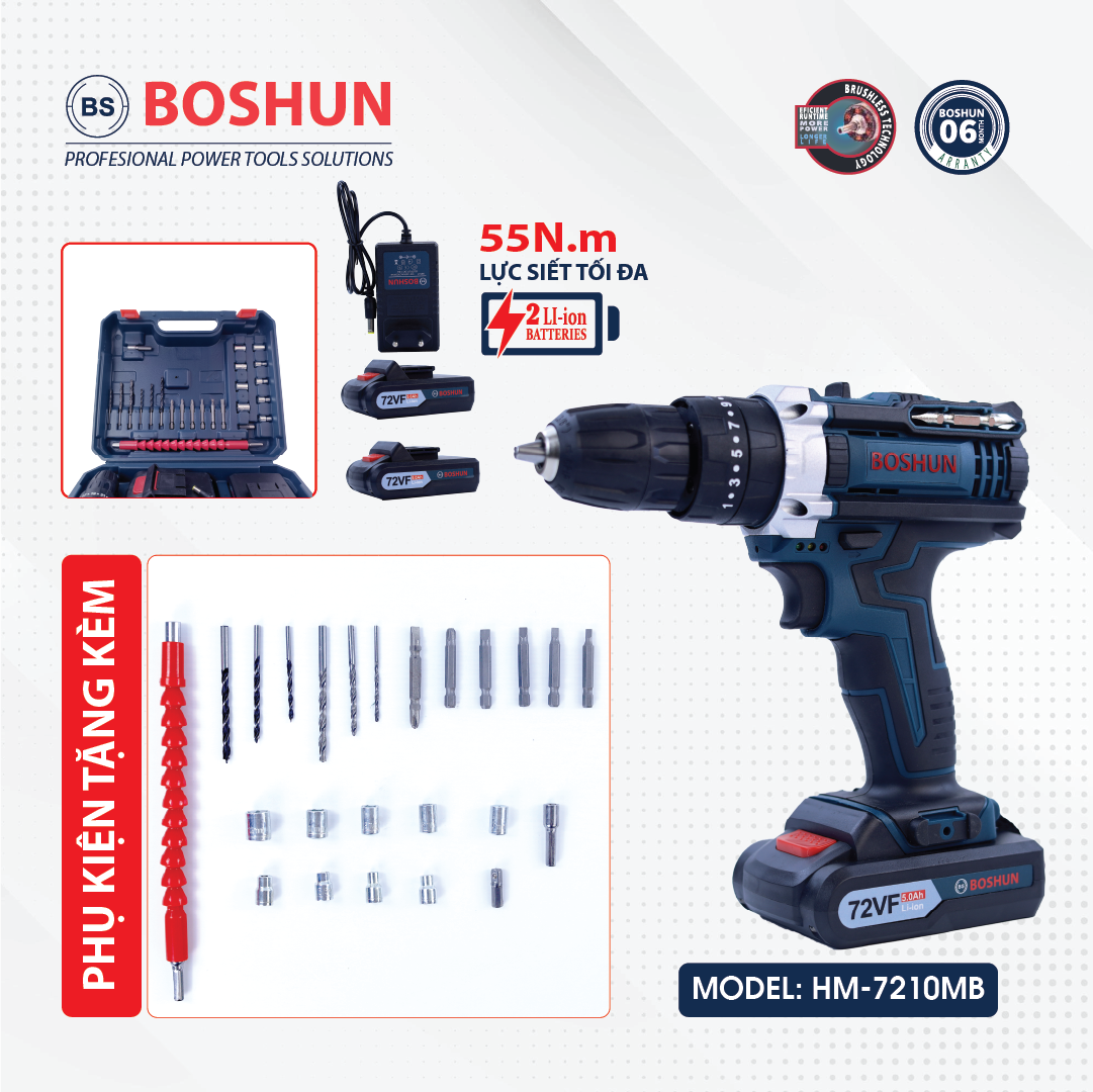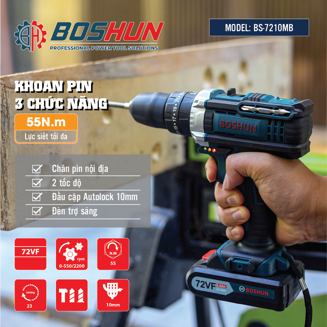 Máy Khoan Pin Boshun BS-7210MB – 3 Chức Năng (Khoan, Búa, Bắn Vít)