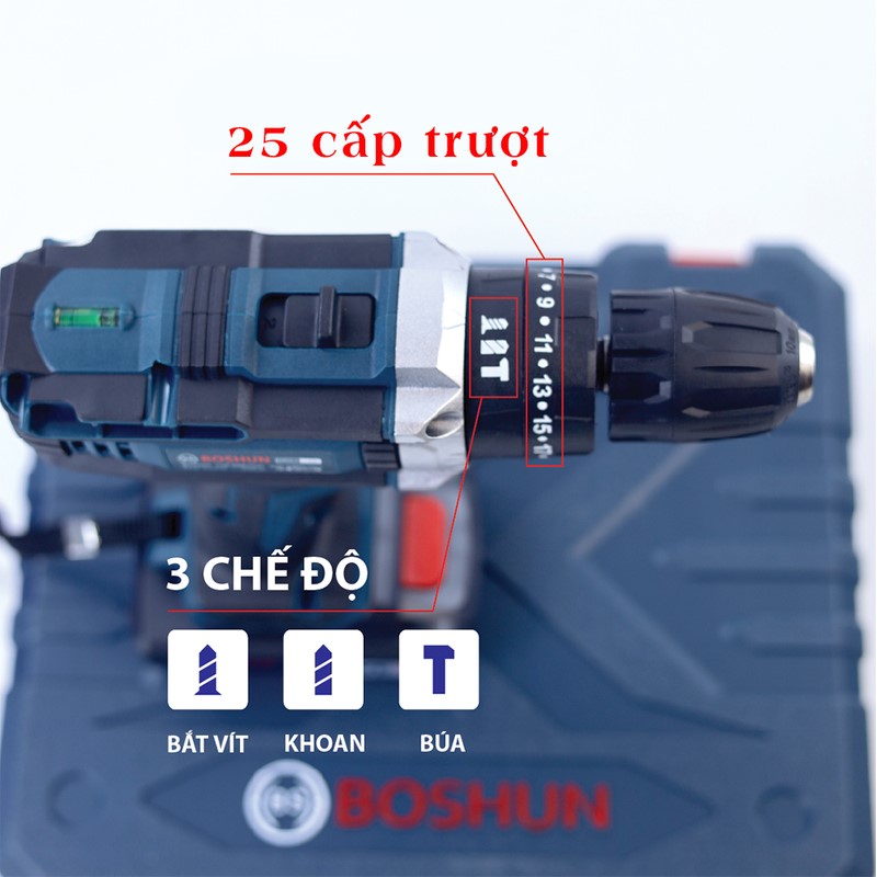 MallMáy Khoan Pin Boshun BS-7210MB – 3 Chức Năng – Tặng Bộ Phụ Kiện 24 Chi Tiết