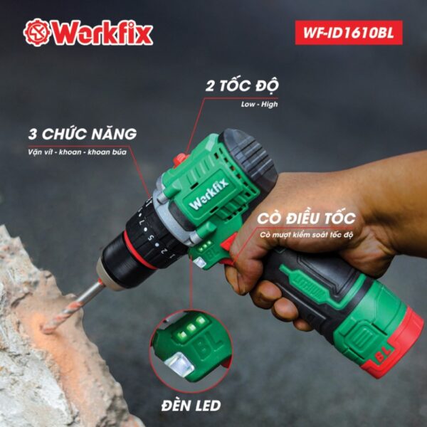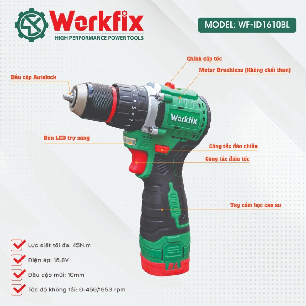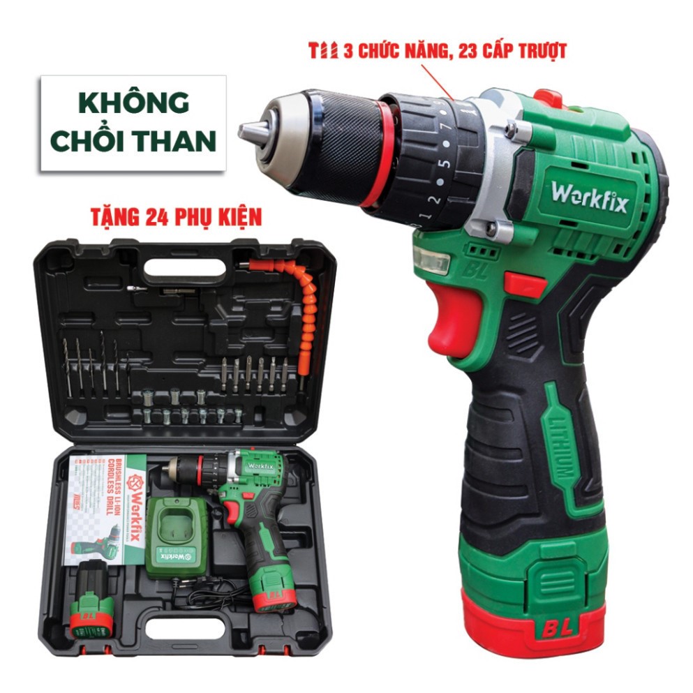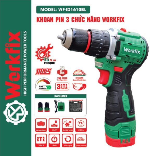 Máy khoan pin 16.8V Workfix WF-ID1610BL Tặng kèm bộ phụ kiện 24 chi tiết
