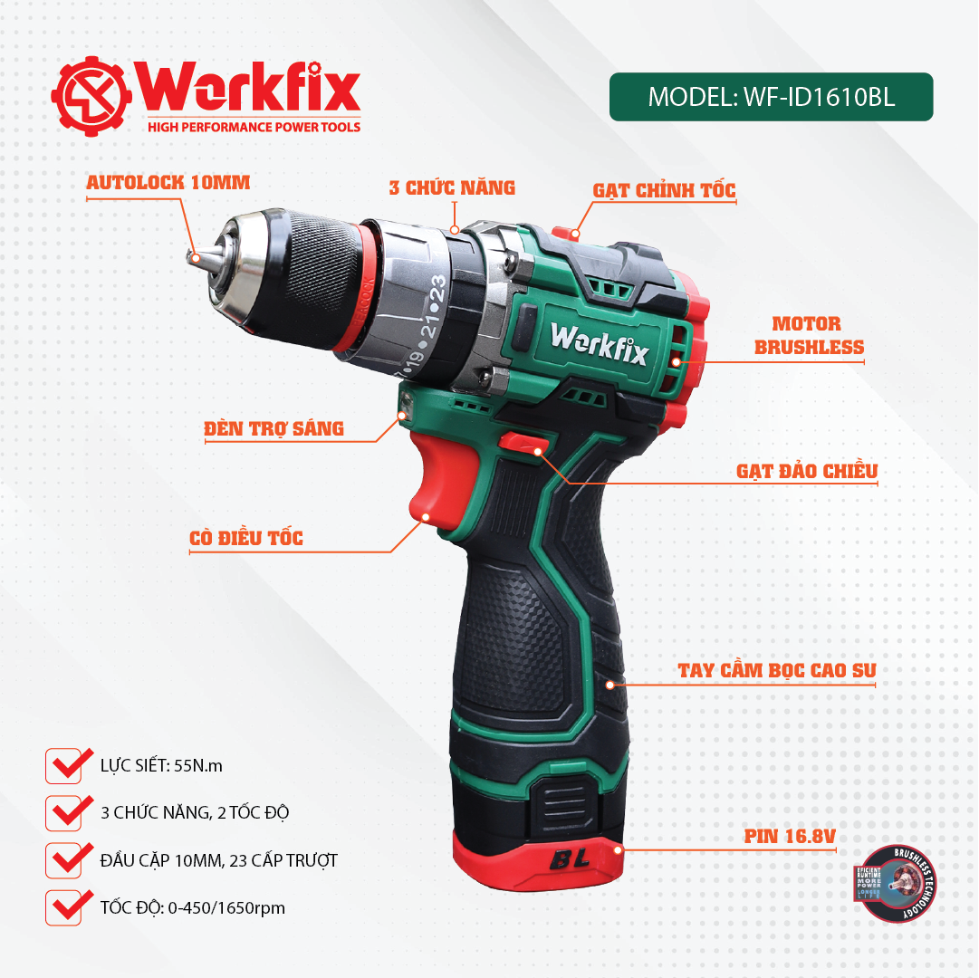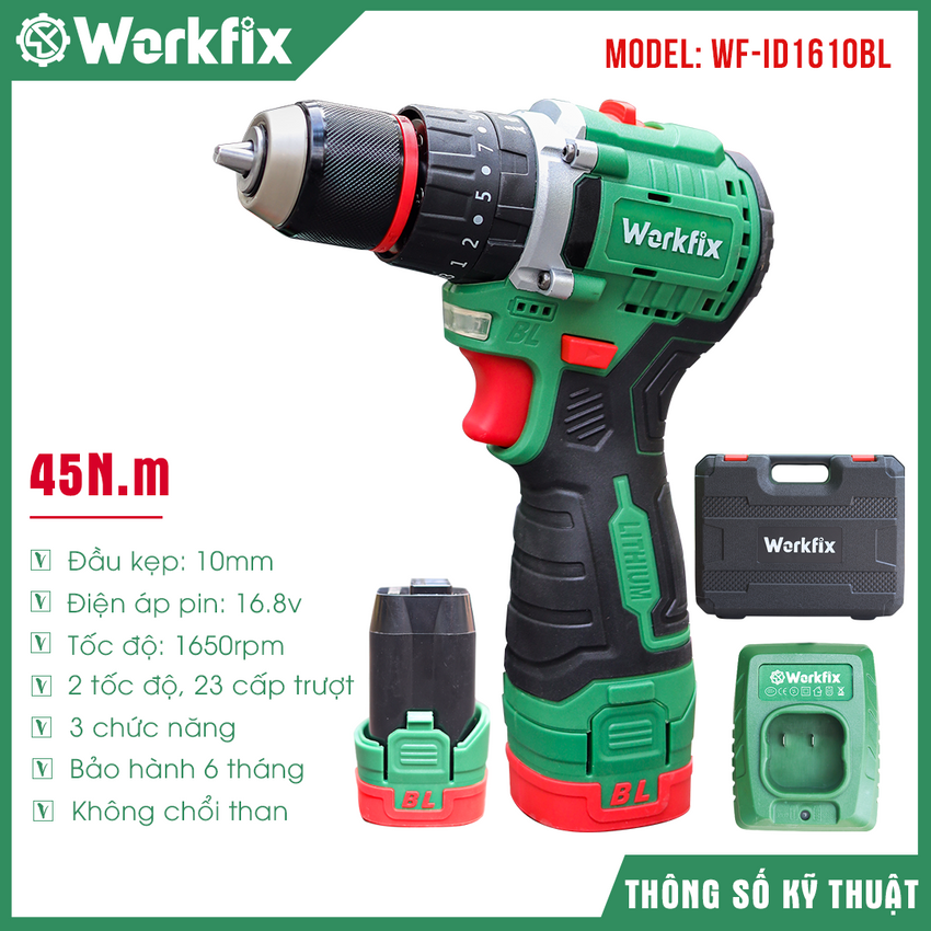 MallMáy khoan pin 16.8V Workfix WF-ID1610BL Tặng kèm bộ phụ kiện 24 chi tiết