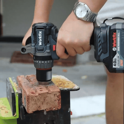 Với lực siết 100N.m, tốc độ không tải 1800 v/p. Máy khoan WORKFIX sở hữu đầy đủ 3 chức năng: