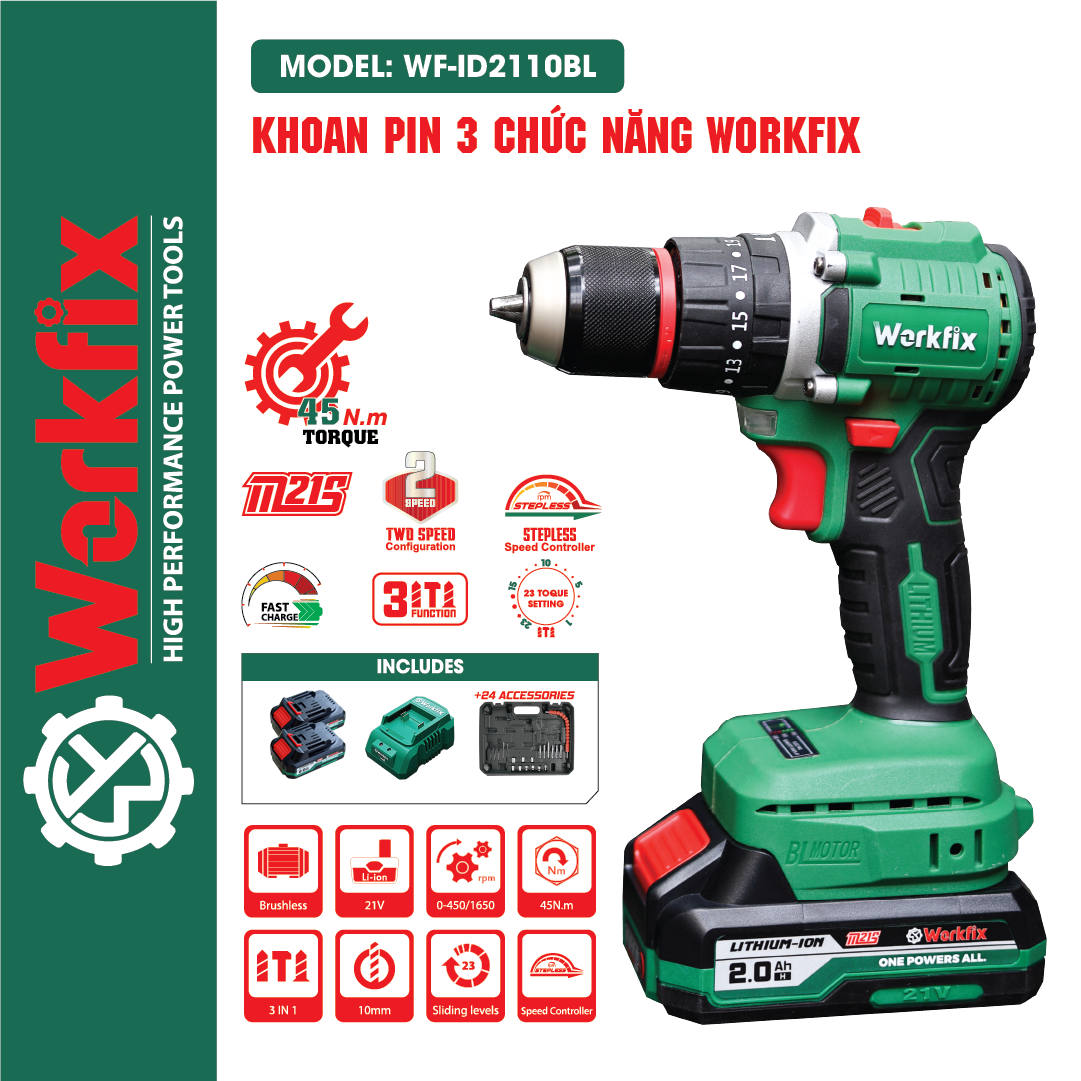 MÁY KHOAN PIN 3 CHỨC NĂNG 21V WORKFIX WF-ID2110BL:
