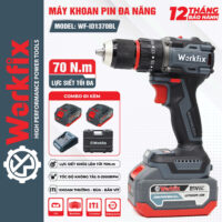 - Tên sản phẩm: Máy khoan pin WORKFIX WF-ID1370N, Động cơ Không chổi than, Lực siết 70Nm, 3 Chức năng, 13mm Autolock
