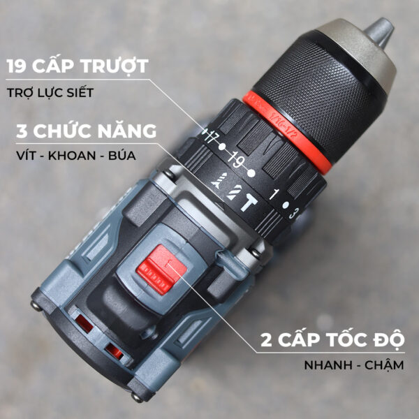 - Chức năng: Khoan tường, khoan sắt, khoan gỗ, gạch, nhôm, tôn, bắt vít, vặn ốc…rút lõi