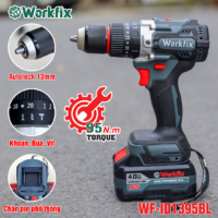 Với lực siết 95N.m, tốc độ không tải 2000 v/p. Máy khoan WORKFIX sở hữu đầy đủ 3 chức năng: