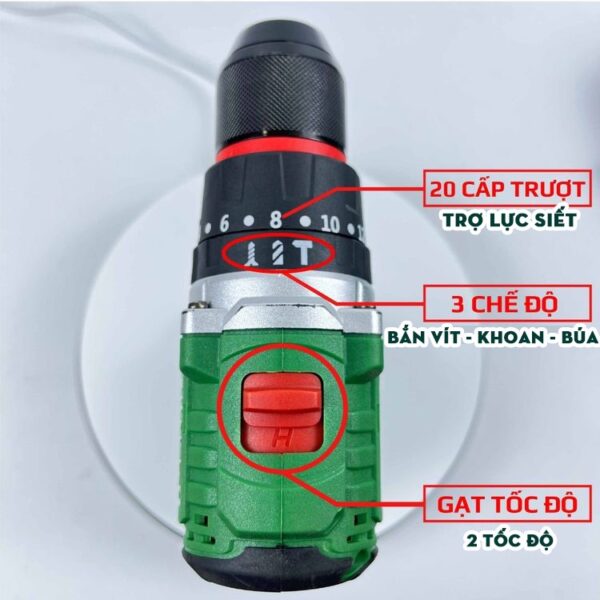 3 CHỨC NĂNG: Khoan thường; Khoan búa; Bắn vít