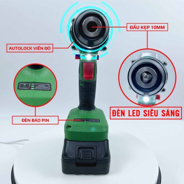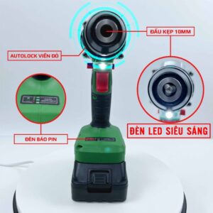 ĐẦU CẶP AUTO LOCK: Đầu kẹp 10mm lắp được mọi mũi khoan thông dụng đáp ứng mọi nhu cầu : khoan búa tường, bắn vít kim loại, khoan thường…