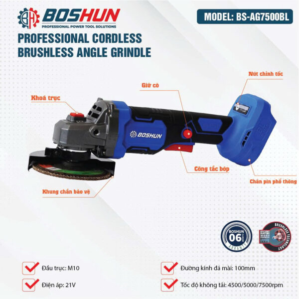 MÁY MÀI GÓC CHẠY PIN BOSHUN BS-AG7500BL