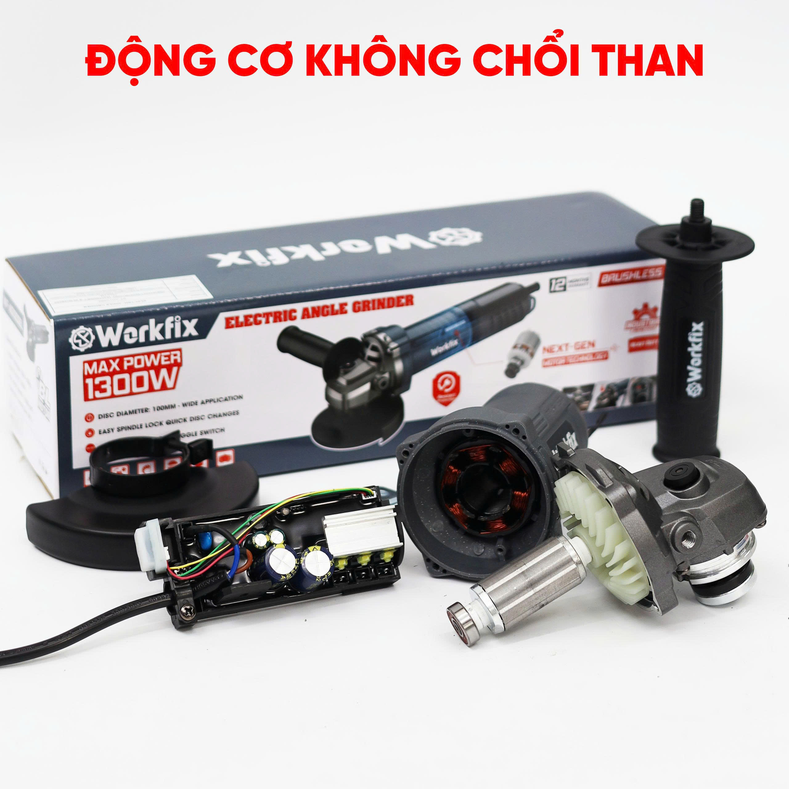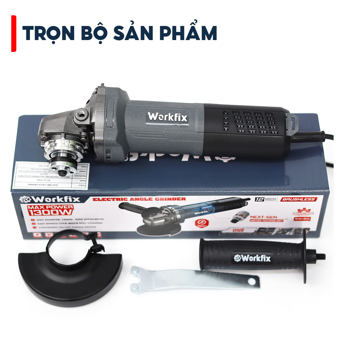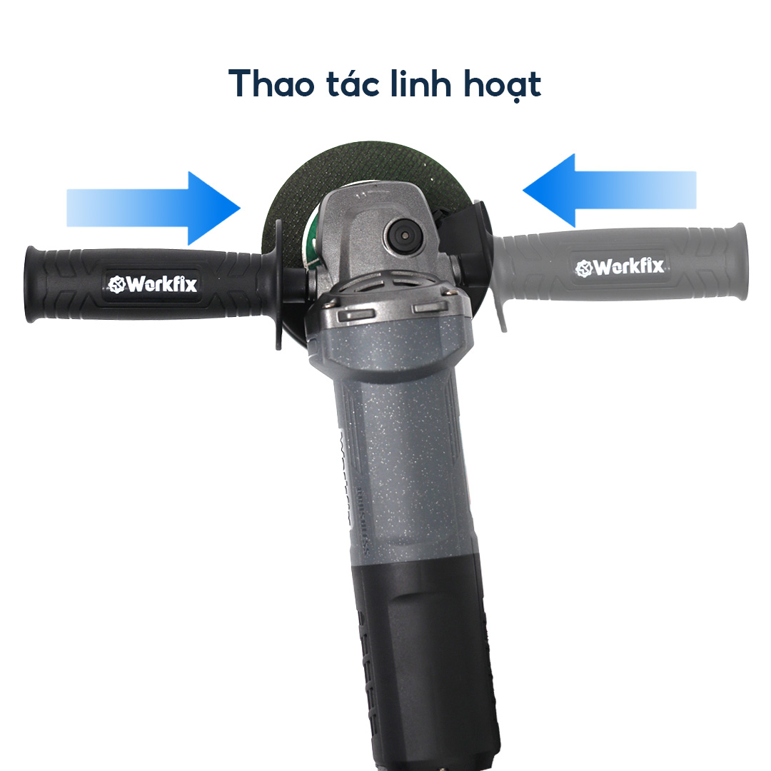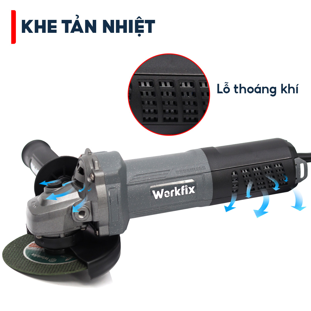 Máy mài Workfix cao cấp trang bị 3 tính năng an toàn: chống khởi động lại, tắt máy dừng ngay lập tức, khởi động mềm.