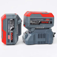 - Đi kèm là bộ sạc bàn nhanh sử dụng nguồn điện gia đình 220v, sạc tự ngắt khi pin đầy và thời gian sạc chỉ hơn 1 giờ. Có trang bị đèn báo khi sạc