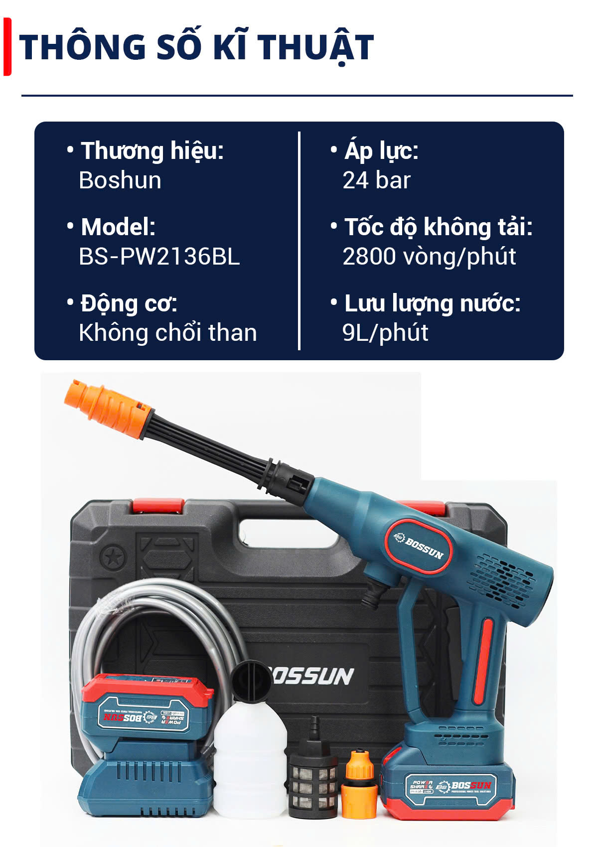 MallMáy rửa xe pin Bossun BS-PW2136BL