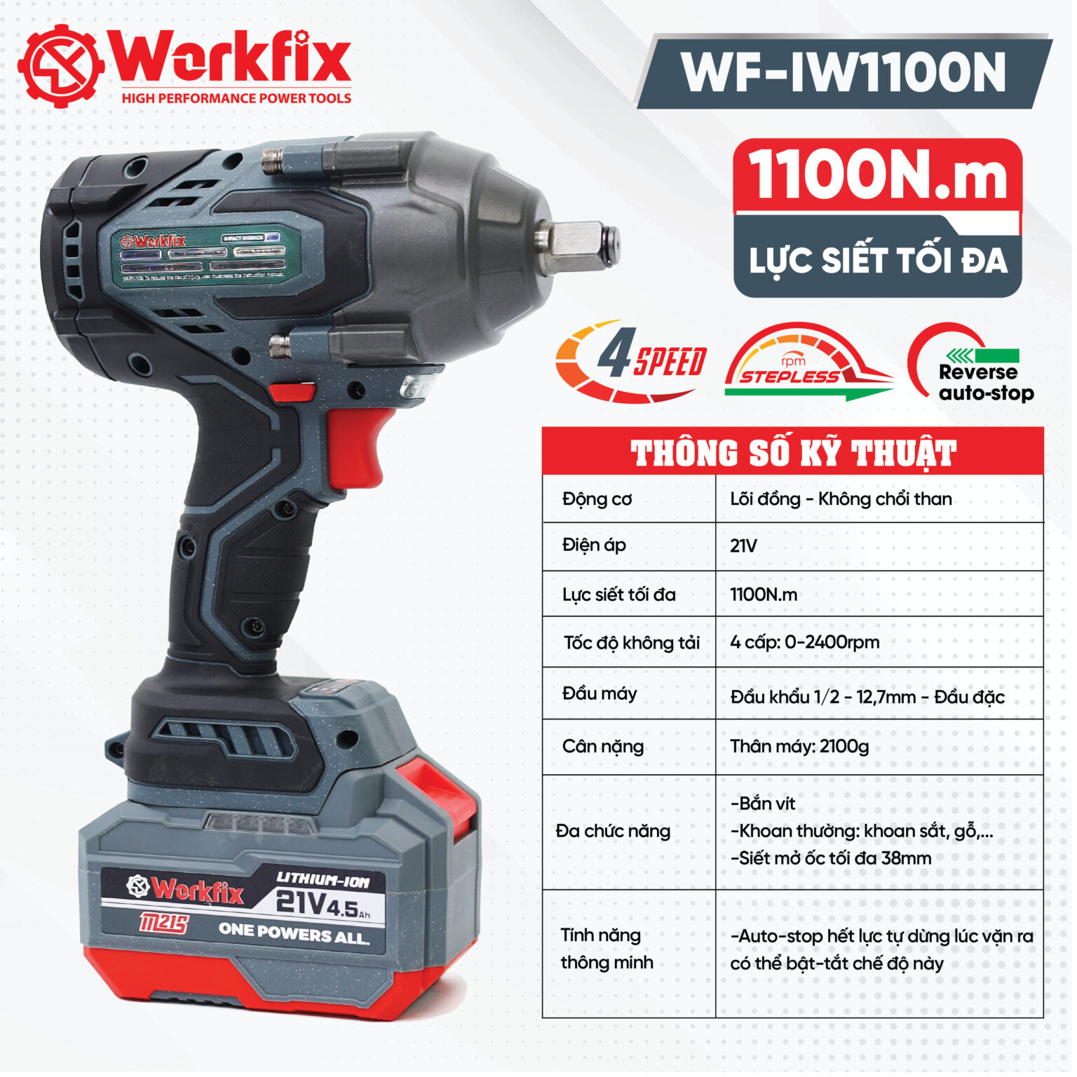 MallMáy Siết Bulong Workfix WF-IW1100N – Lực Siết Khủng 1100N – Mở Vặn Ốc Xe Tải, Ô Tô, Xe Máy