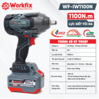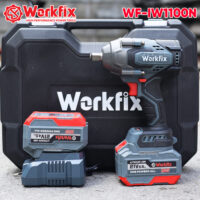 Máy siết bulong Workfix trang bị 2 pin 4,5 Ah mỗi pin thiết kế mạch 4 mosfet cho dòng xả cao tránh ngừng ngắt khi sử dụng, có mã vạch trên từng cell và đèn báo pin riêng biệt trên mỗi quả pin, thời gian làm việc liên tục từ 4- 5h